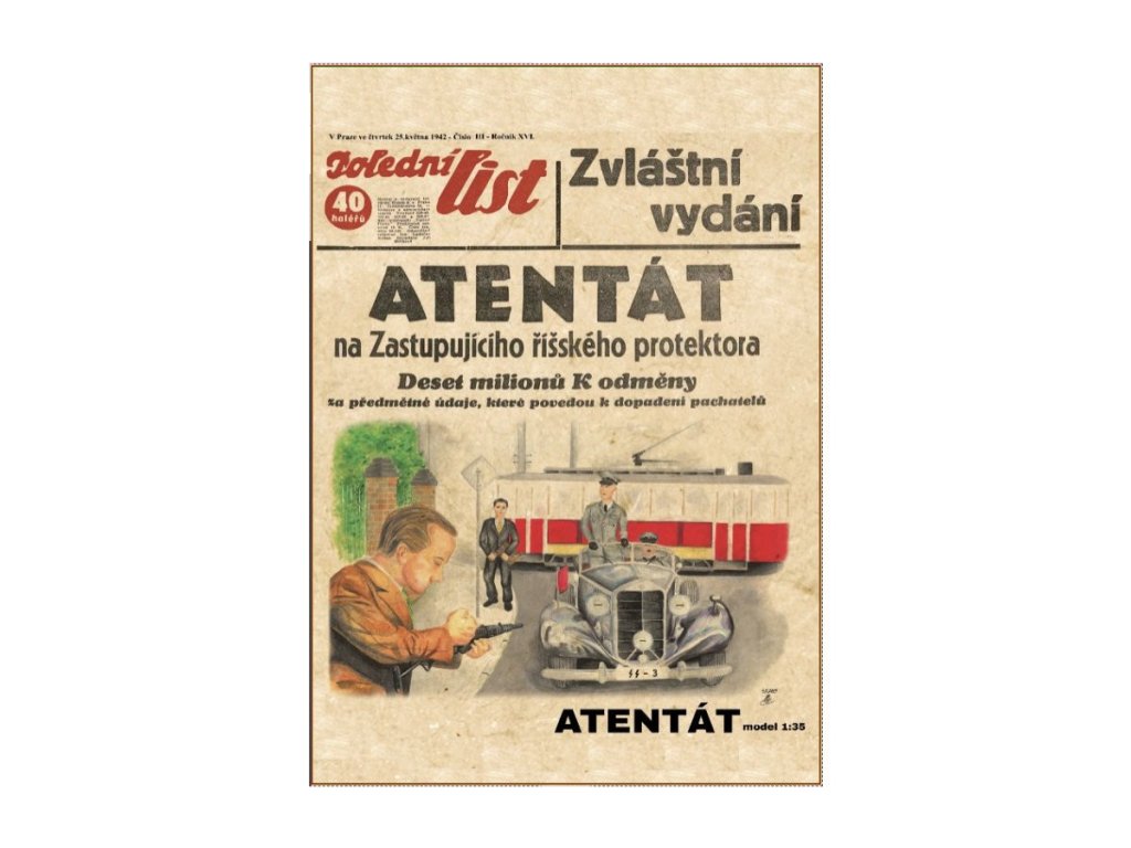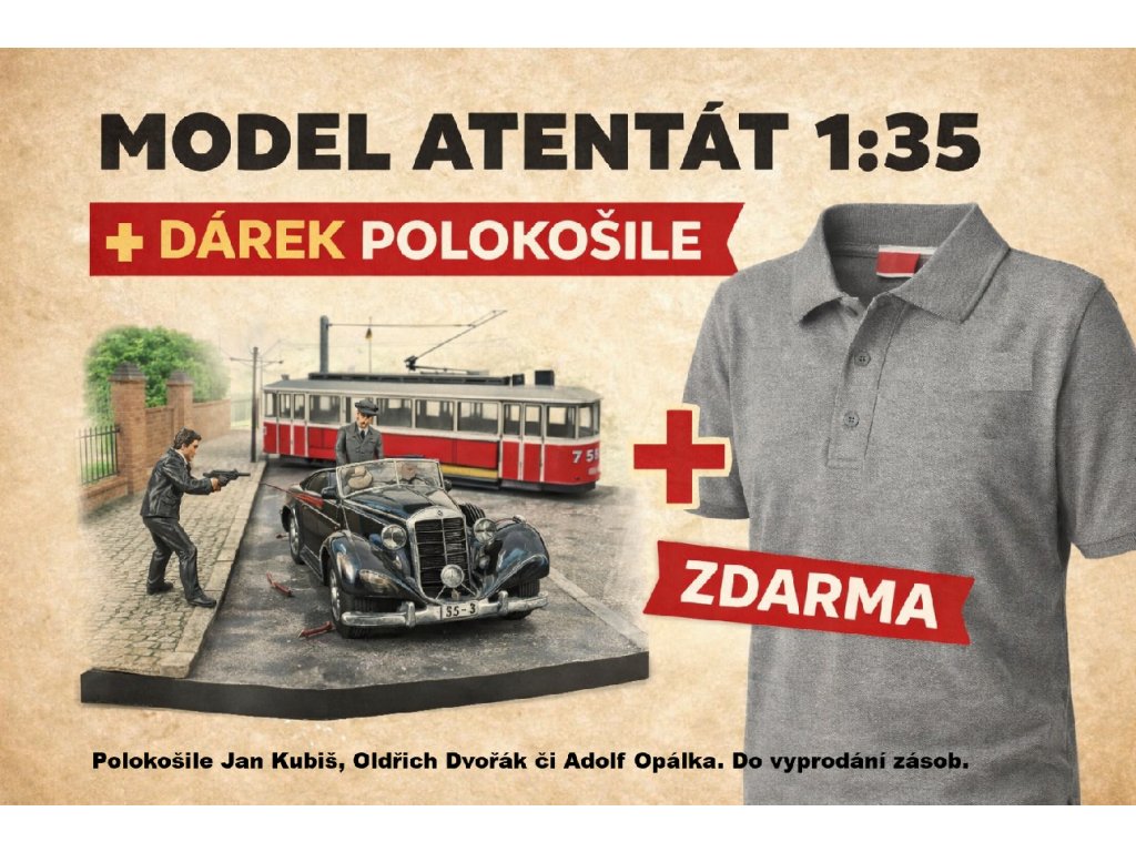 Plastikový model 1/35 Atentát a jako dárek ZDARMA sběratelské polokošile Jan Kubiš, Adolf Opálka, Oldřich Dvořák. Do vyprodání zásob.